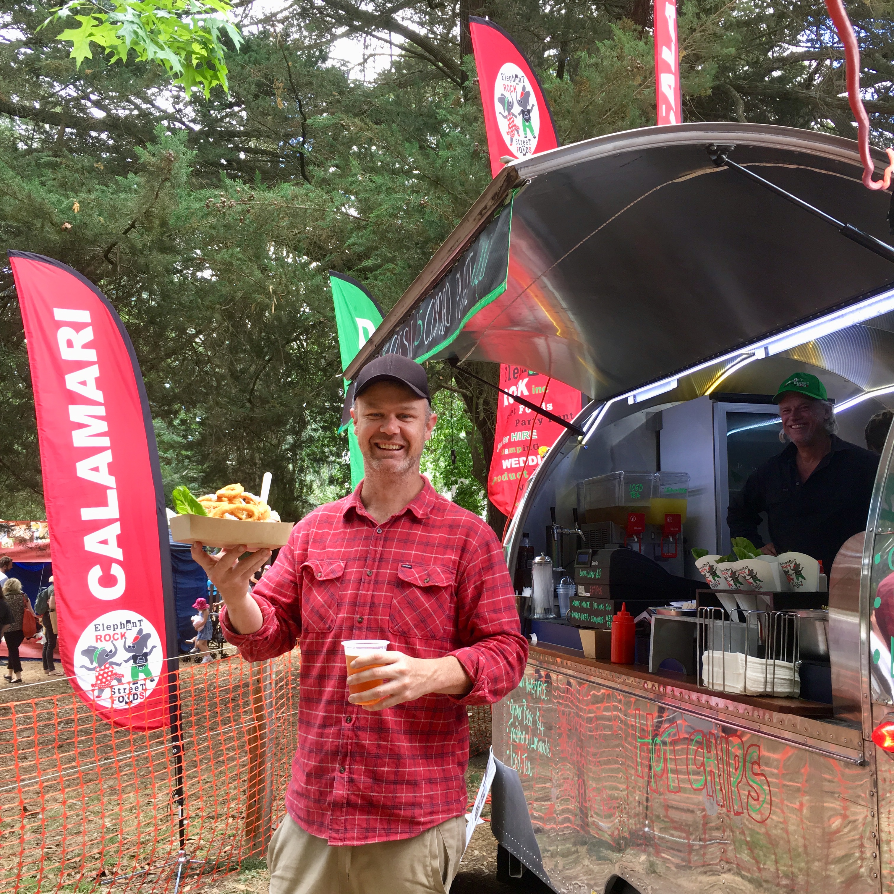Airstream Calamari Food Van serving freshly cooked calamari and chips. Based in Victoria, Australia. Food Truck service with Airstream style.
