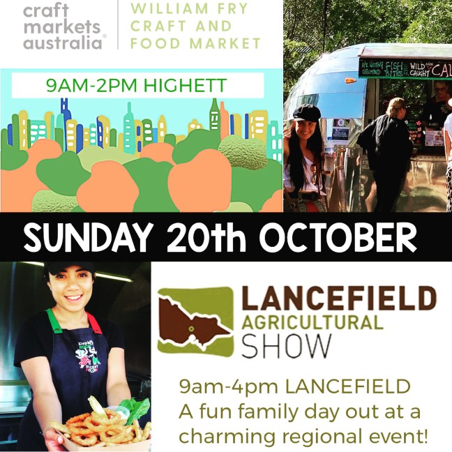 You’ll find the Elephant Rockers cooking up a storm at both the new Sir William Fry Reserve Market in Highett AND at the charming Lancefield Agricultural Show in Lancefield!! Looks like the weather is going to be kind to us all ๐