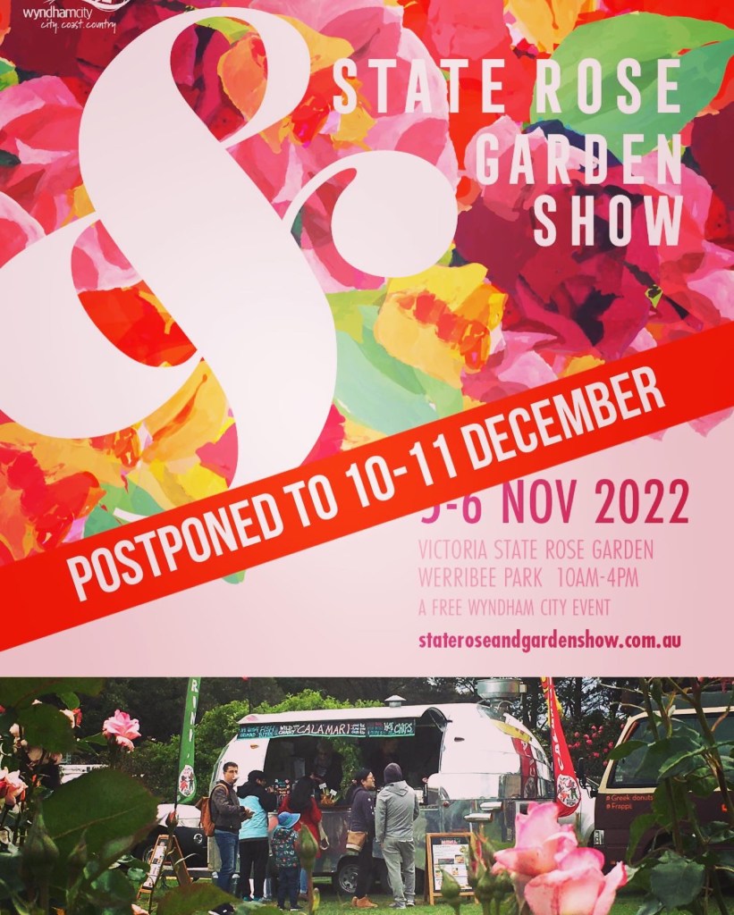 State Rose Festival rescheduled to 10th-11th December Posted on November 4, 2022 by Elephant Rock Calamari State Rose Show 10th-11th December Due to the unusually wet weather and soggy conditions the State Rose Show has been rescheduled. SHARE: Click to share on X (Opens in new window) X Click to email a link to a friend (Opens in new window) Email Click to share on Facebook (Opens in new window) Facebook Click to share on LinkedIn (Opens in new window) LinkedIn Click to share on Pinterest (Opens in new window) Pinterest Like Loading... Related