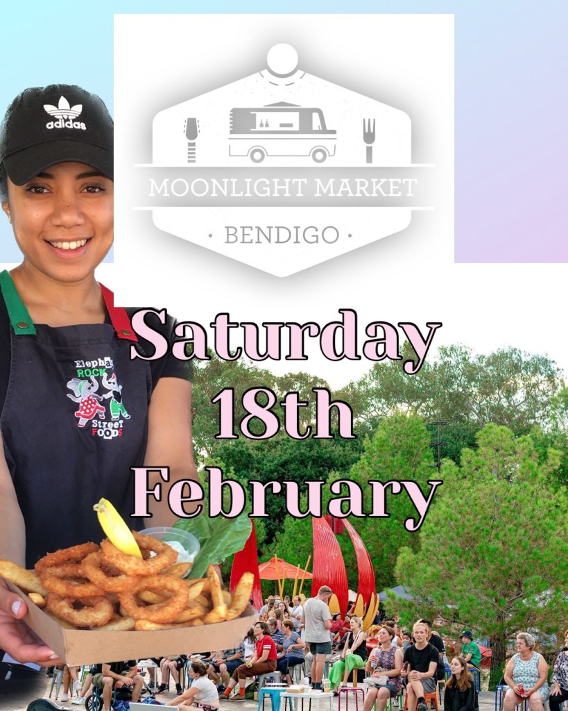 Saturday 18th Feb – Moonlight Market Bendigo 5pm-9pm Dai Gum San. Market, music, food trucks! See more: https://m.facebook.com/moonlightbendigo/